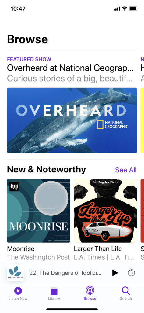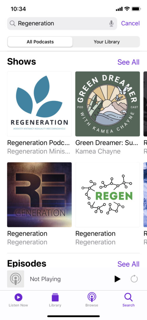 3. Tap the album art for the podcast. This will show you the album art and description of the Regeneration podcast. Make sure you hit the subscribe button if you haven’t already.